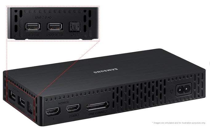 A key component of Samsung The Frame TVs is the One Connect box. It's a central Hub that allows one easy place for you to connect all of your components to eliminate all the messy wires associated with all other TVs.